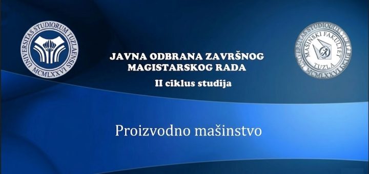 Bavrk Halid, javno će braniti završni rad pod nazivom: “PRORAČUN I IZBOR VENTILATORA ZA VENTILACIJU PLASTENIČKIH POVRŠINA”. Javna odbrana završnog rada obavit će se 27.03.2026. u 13,00 sati na Mašinskom fakultetu Univerziteta u Tuzli, pred Komisijom u...