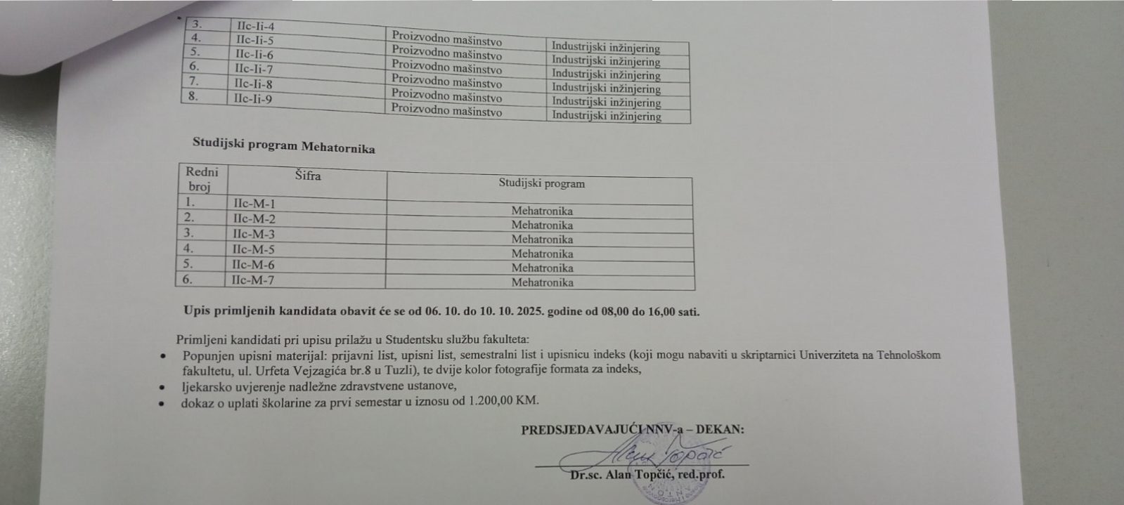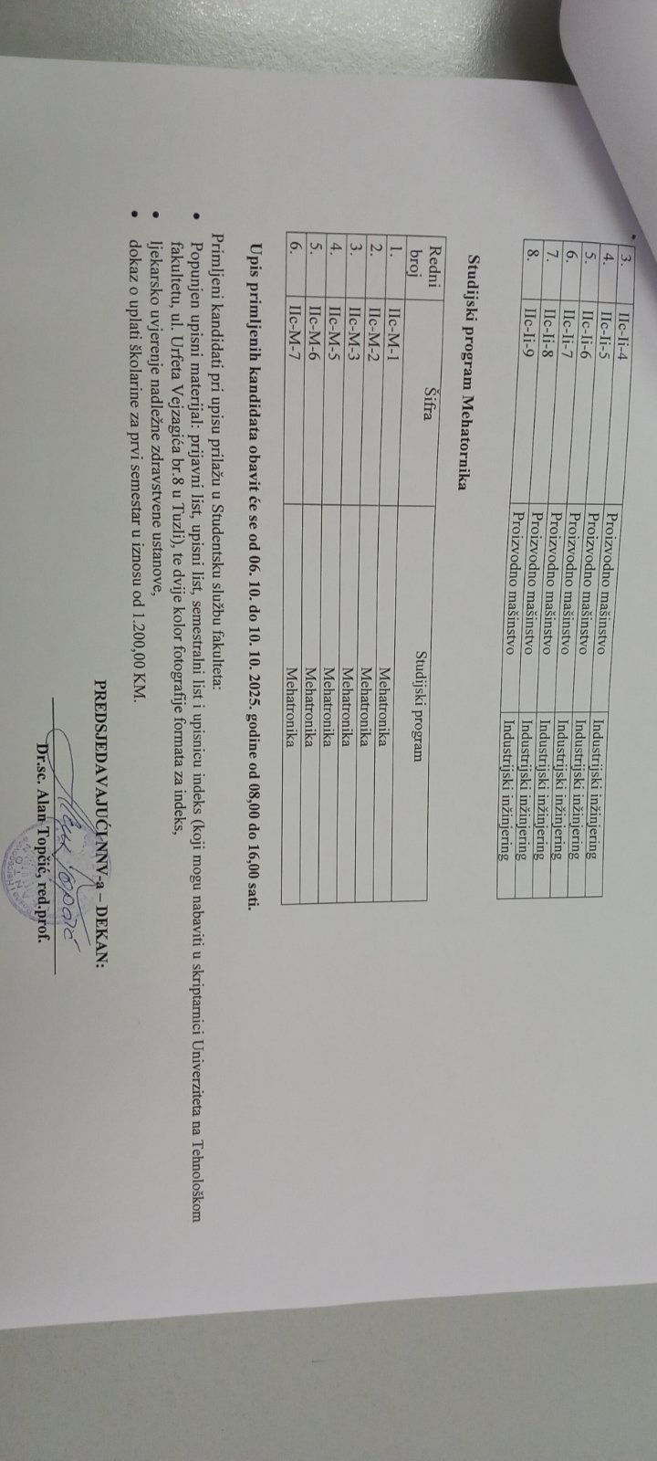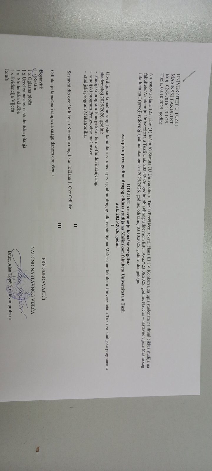 Konačna rang lista kandidata za upis na II ciklus studija u akademskoj 2025/2026. godini